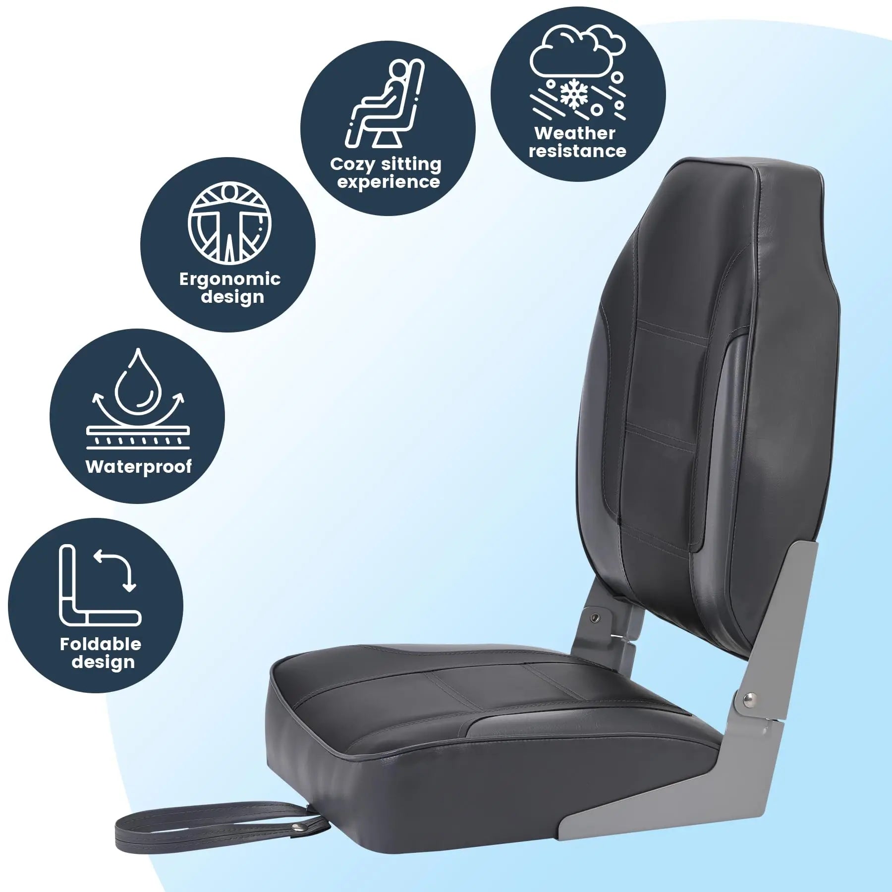 【COMFORTABLE & SAFETY】The high-back boat seat ergonomically designed for superior comfort and functionality, making it ideal for both fishing and boating, this boat seat greatly reduces fatigue during long boat trips