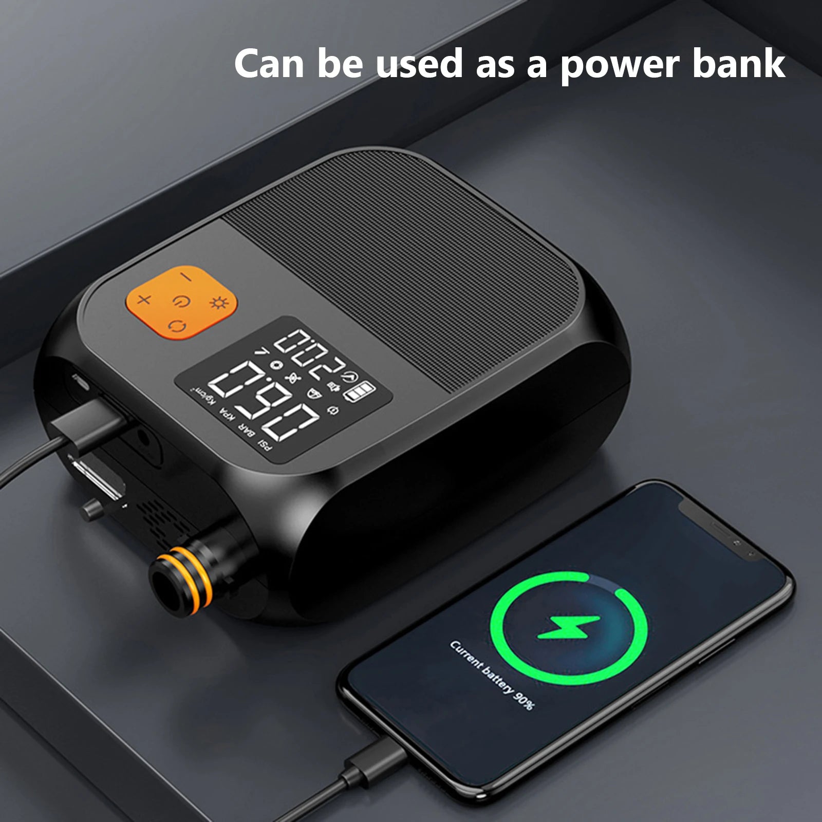 5.Multifunctional Use: Beyond inflation, the pump can also serve as an emergency power source and lighting device for added versatility.