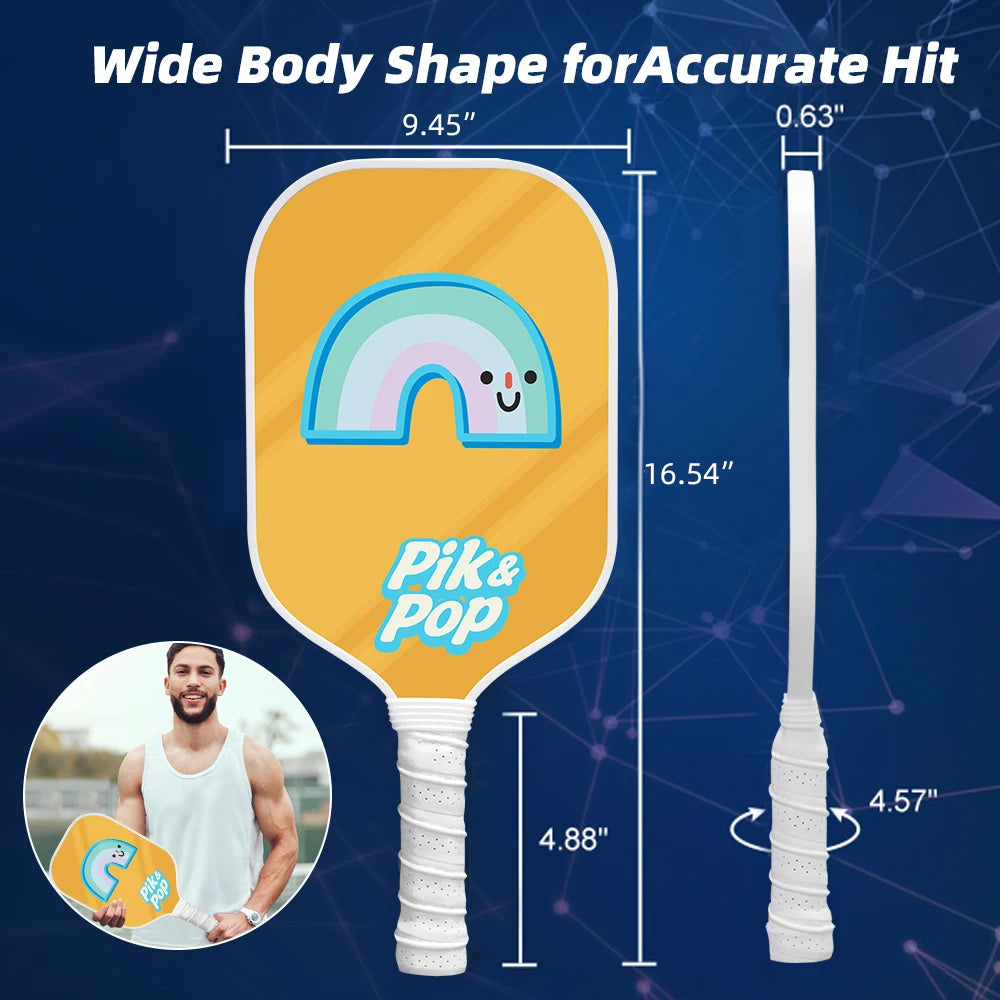 Pickleball Paddle Set with 2 Rackets, 4 Balls, Bag & Grip Tapes Fiberglass Surface & Polypropylene Core for Control, Wide Body Shape for All Skill Levels & Ages
